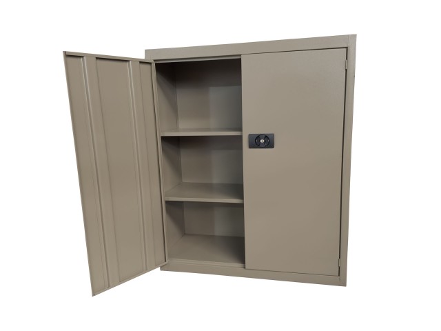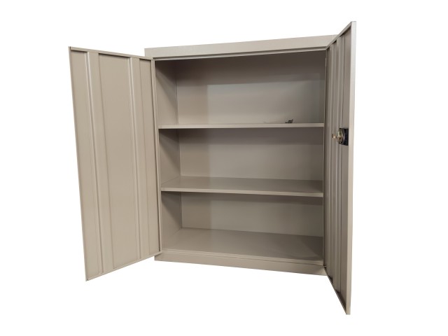 Cuenta con entrepaños fijos reforzados para mayor resistencia en cada división. Dos puertas abatibles, las puertas de los gabinetes se abren y cierran por medio de tres bisagras, cada puerta cuenta con 2 refuerzos verticales.